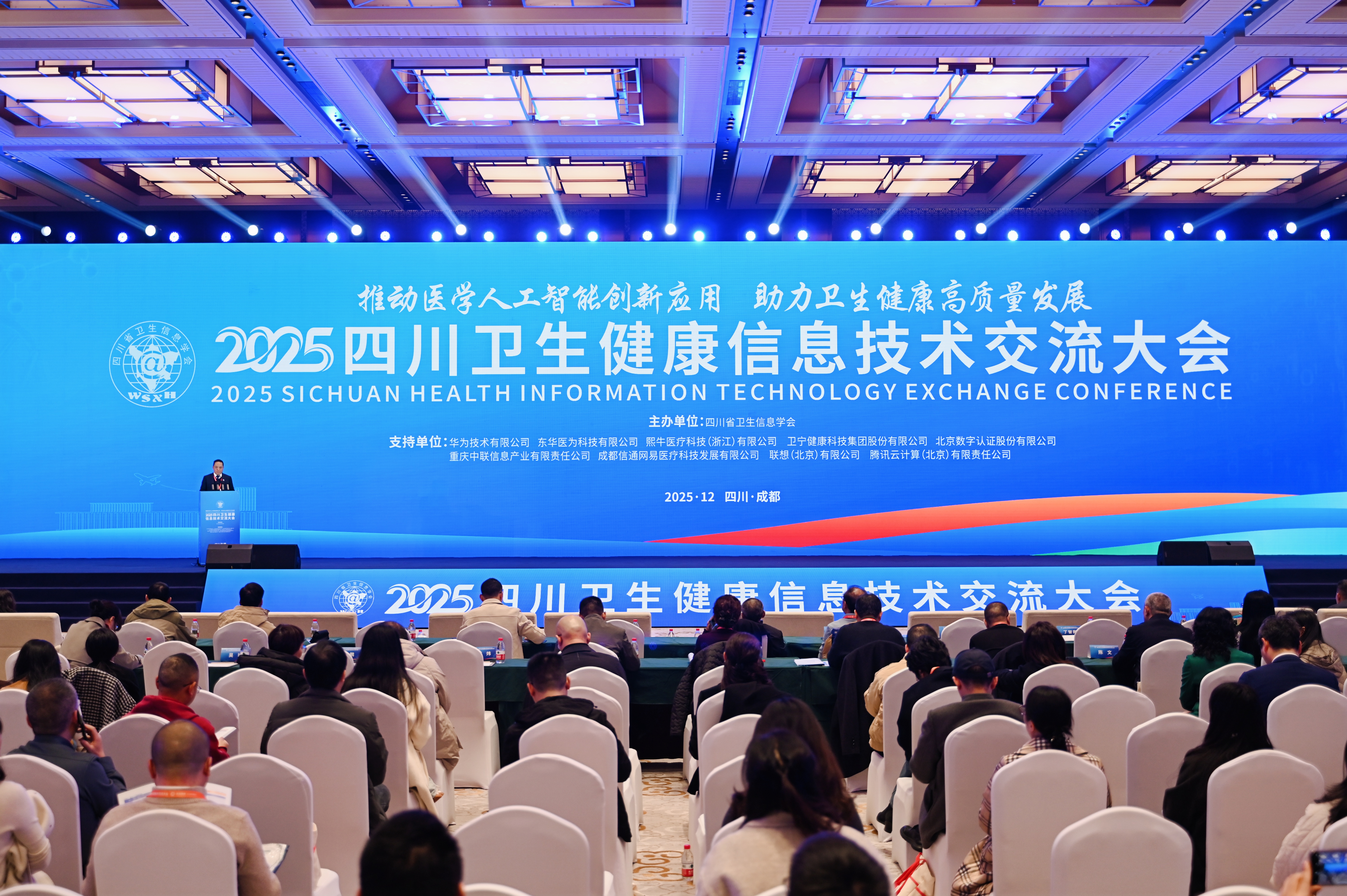为全面贯彻落实党的二十大和二十届历次全会精神,推进“健康中国”和“数字中国”战略实施,落实国家和四川省卫生健康大会精神,加快推动健康四川高质量发展,12月11日至13日,由四川省卫生信息学会主办的“2025年四川省卫生健康信息技术交流大会”在成都双流成功举办,本次大会汇聚了国家与省内相关领导、行业专家及学者通过主题报告、专题研讨、成果展览等多种形式,共同聚焦卫生健康信息化的最新趋势与创新实践,为区域医疗数字化转型注入了新的思想动力。